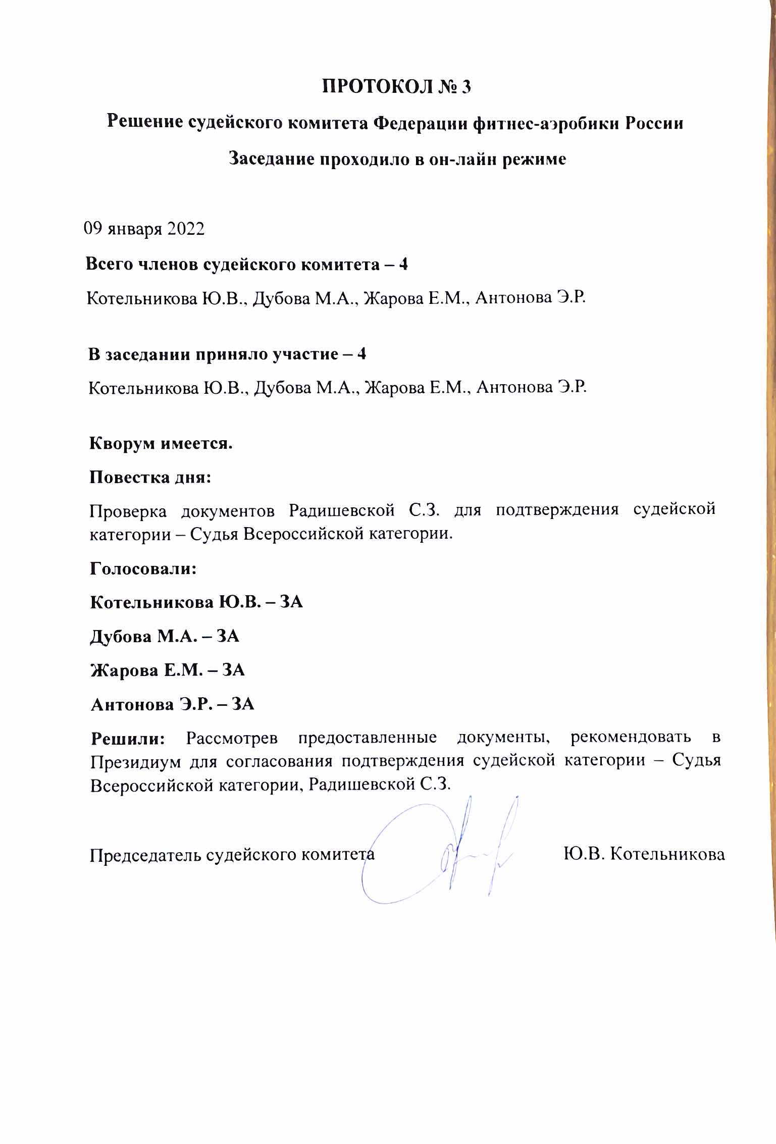 Решение Президиума №92 - о присвоении ВК Радишевской С.З.